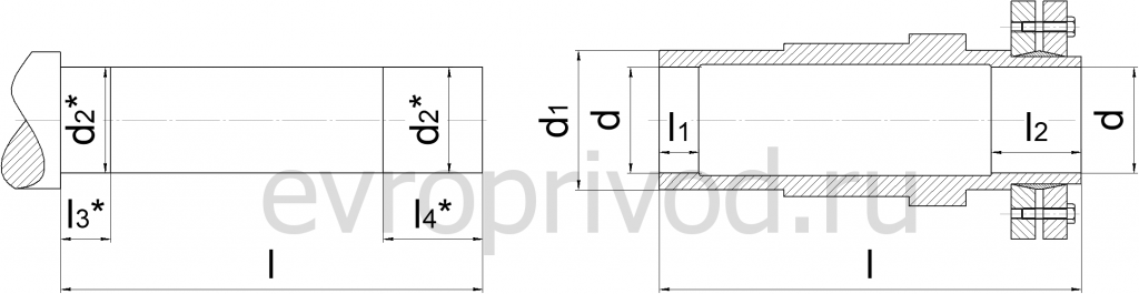 РАЗМЕРЫ ПОЛОГО ГЛАДКОГО ВЫХОДНОГО ВАЛА СО СТЯЖНОЙ МУФТОЙ